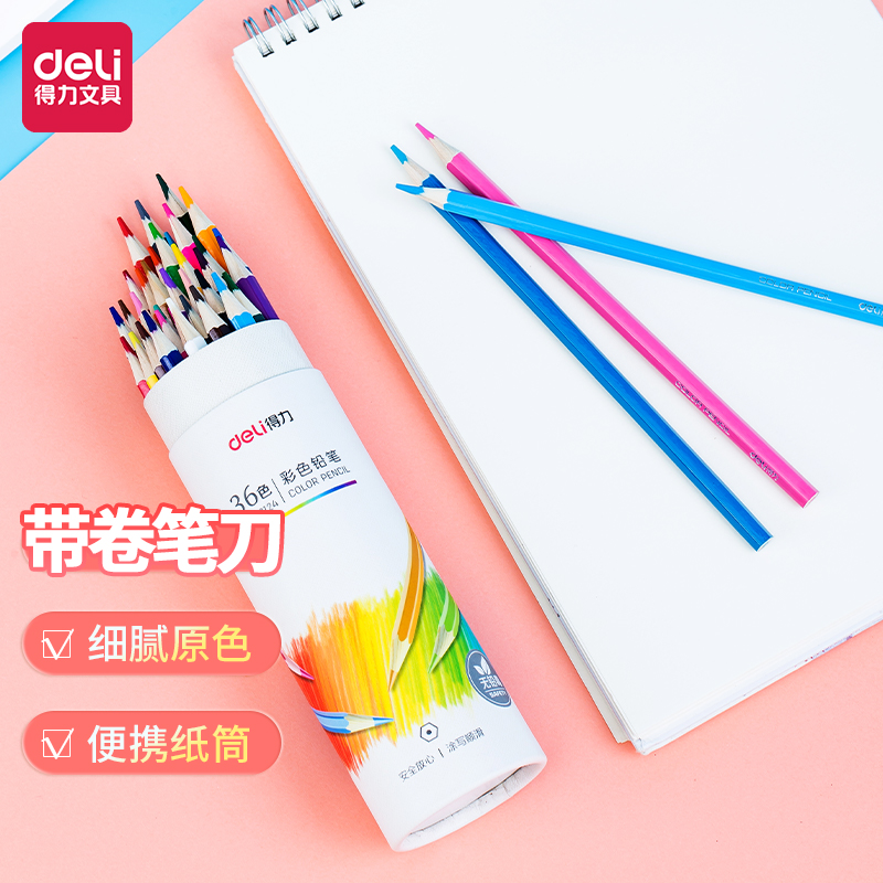 得力(deli)36色纸桶装学生绘画艺术写生彩铅彩色铅笔儿童涂色填色彩笔绘画笔套装 68124