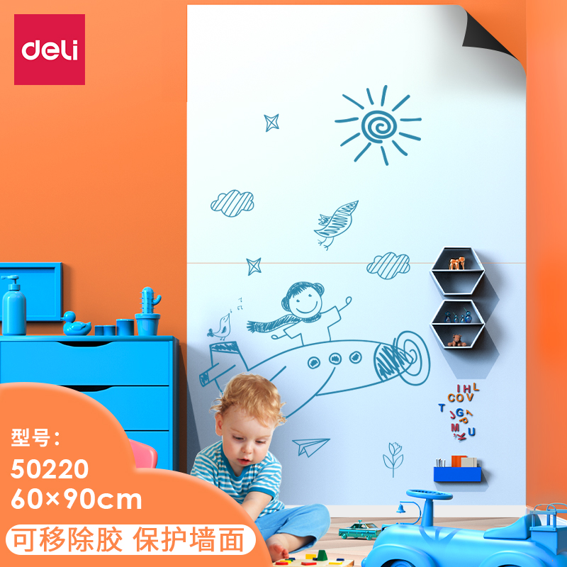 得力(deli)90*60cm软白板 家用可移除胶墙贴 磁性自粘贴可擦写画板 涂鸦自粘墙纸 儿童黑