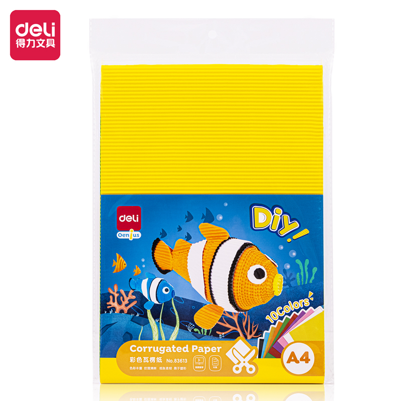得力(deli)儿童彩色手工diy瓦楞纸制作 A4美工纸幼儿园手工折叠纸材料 10张混色83613