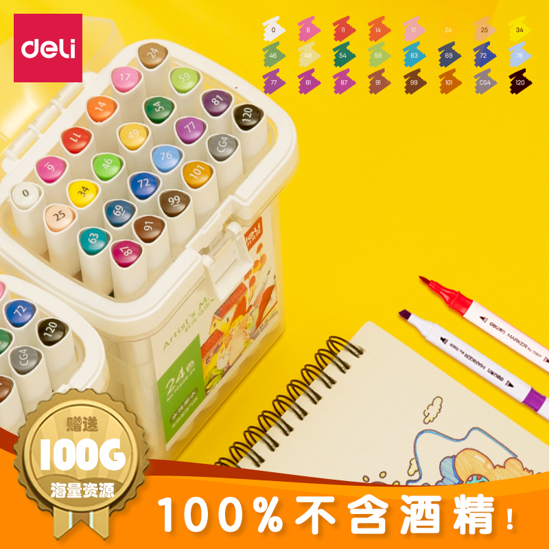 得力(deli)24色水性马克笔套装 双头无气味软头水彩笔学生美术专用儿童绘画画笔套装 70809-