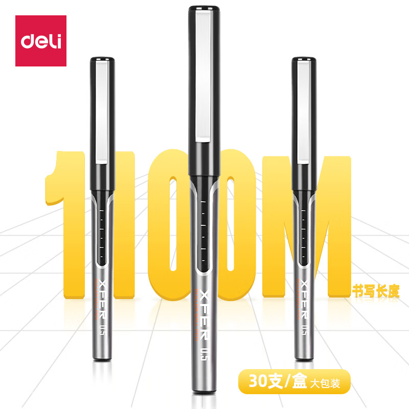 得力(deli)直液笔 0.5mm全针管中性笔签字笔 走珠笔水笔 办公用品 黑色 30支/盒黑 33