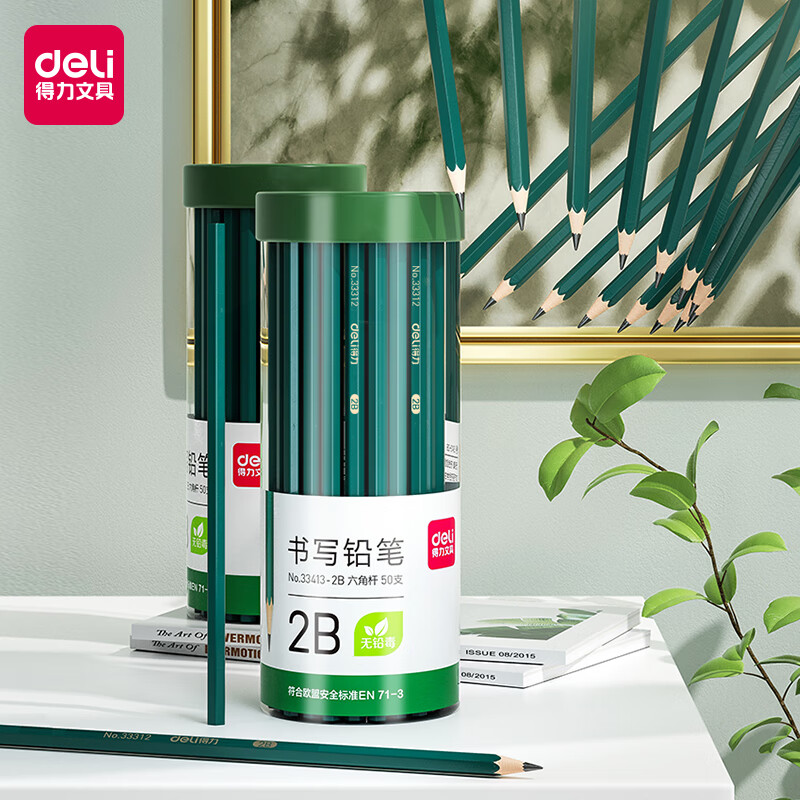 得力(deli)50支2B铅笔 六角杆学生考试绘图铅笔 书写铅笔 33413-2B