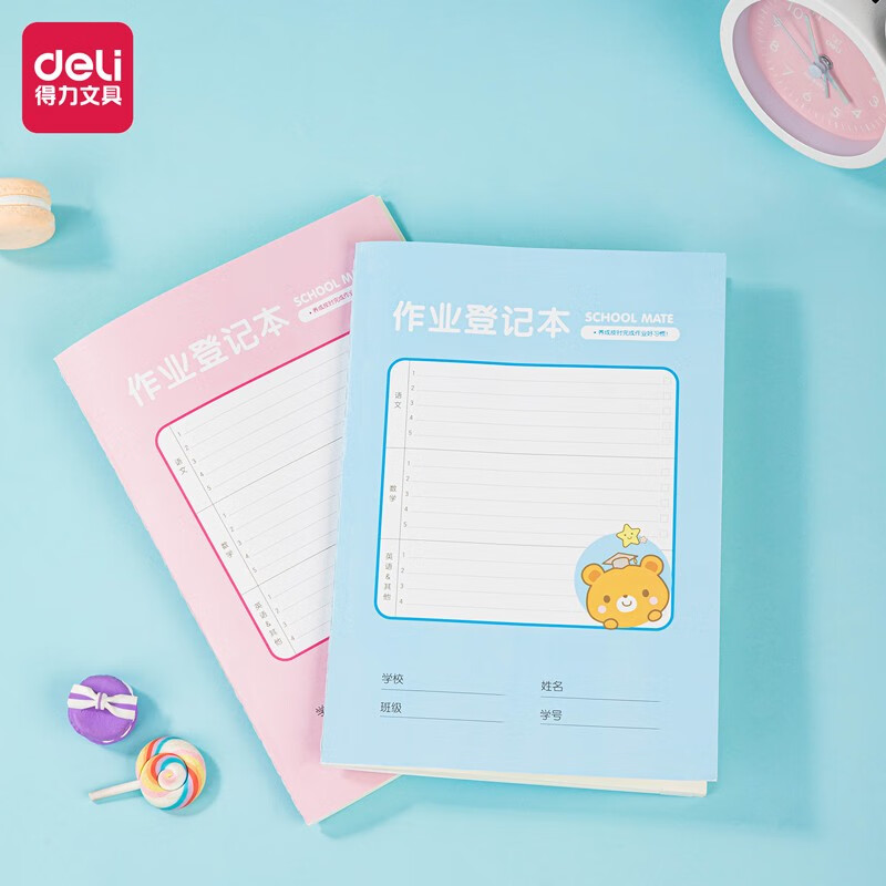 得力(deli) 12本A5/50张作业登记本笔记本子 小初高中学生作业记录本缝线本记事本 FA55