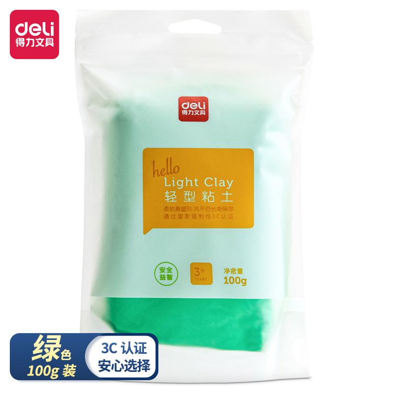 得力(deli)超轻粘土 儿童玩具婴幼儿沙滩彩泥橡皮泥黏土男孩女孩DIY手工制作 100g装 绿 6