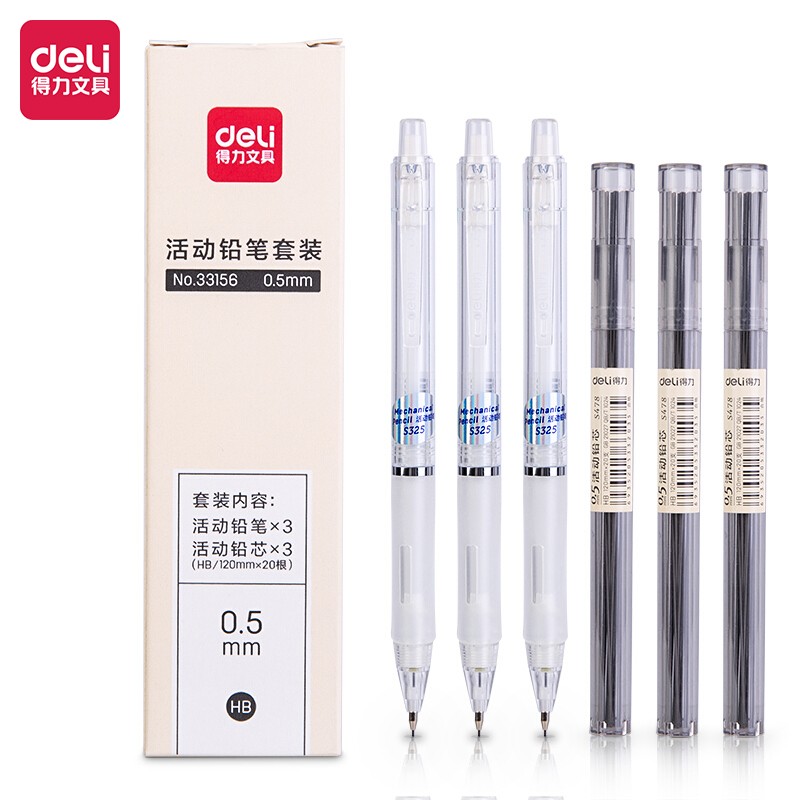 得力(deli)0.5mm活动铅笔套装 附HB活动铅芯33156白 学生自动铅笔