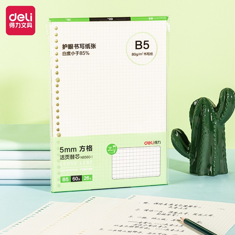 得力(deli) B5/60张活页笔记本替芯 26孔方格款替芯活页纸 NB560-1