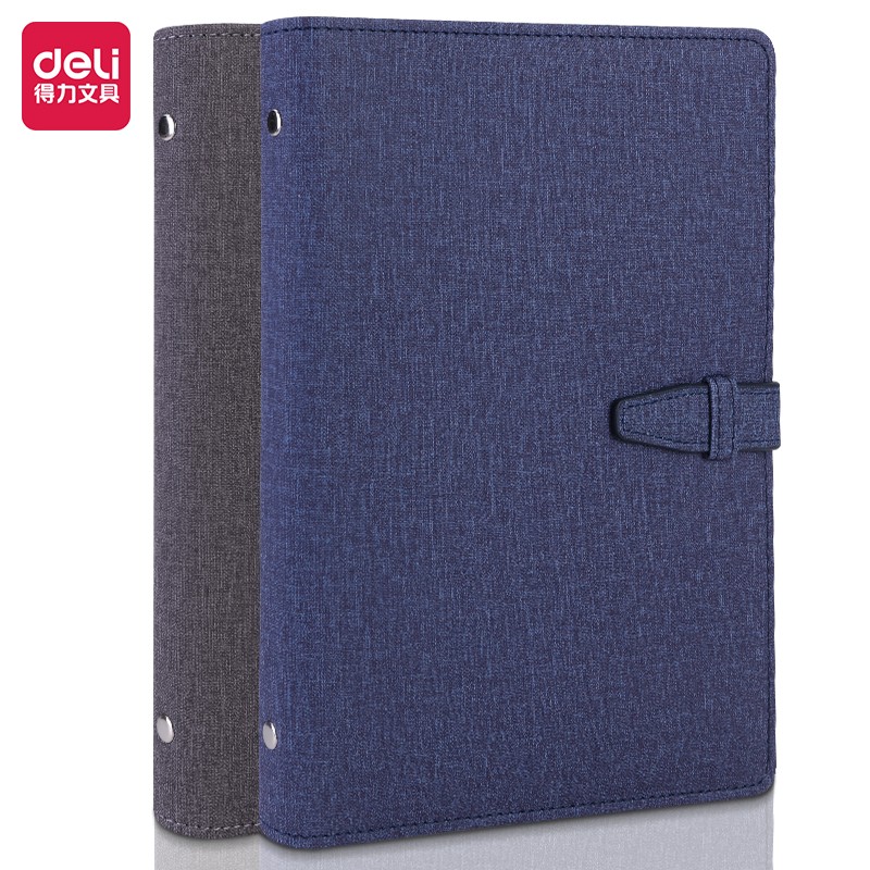 得力(deli)25K100张时尚活页笔记本子文具 商务办公插袋记事本日记本扣带皮面本办公用品 蓝灰