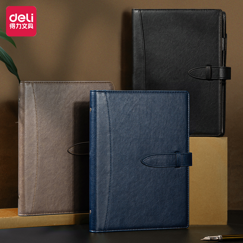 得力(deli)经典活页皮面本笔记本子 商务办公插袋皮面本记事本日记本扣带办公用品文具 16K100