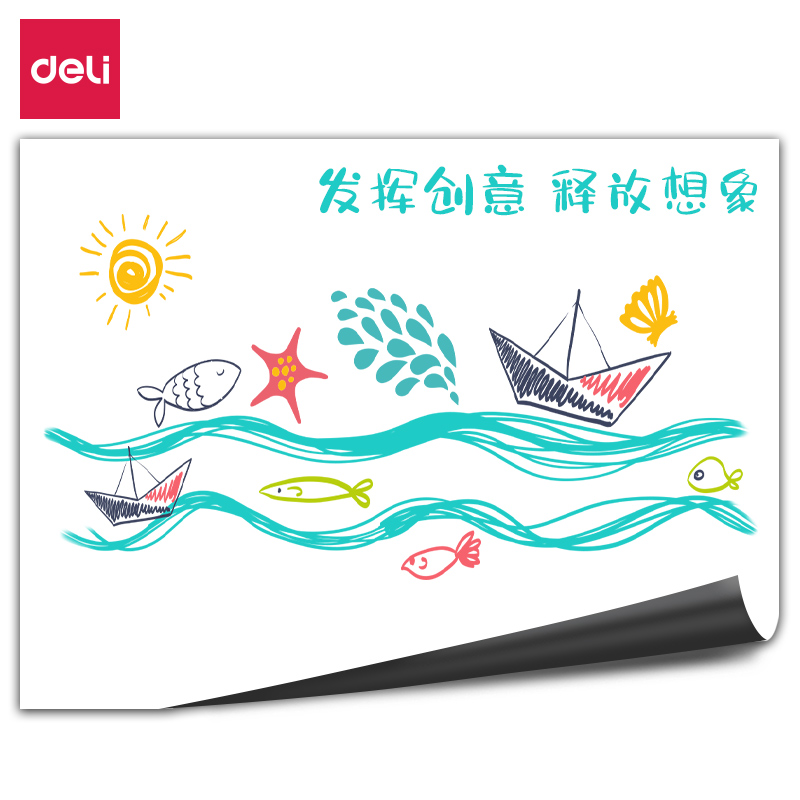 得力(deli)90*200cm家用软磁铁自粘白板贴可擦写墙贴/写字板/画板 涂鸦自粘墙纸 儿童小黑