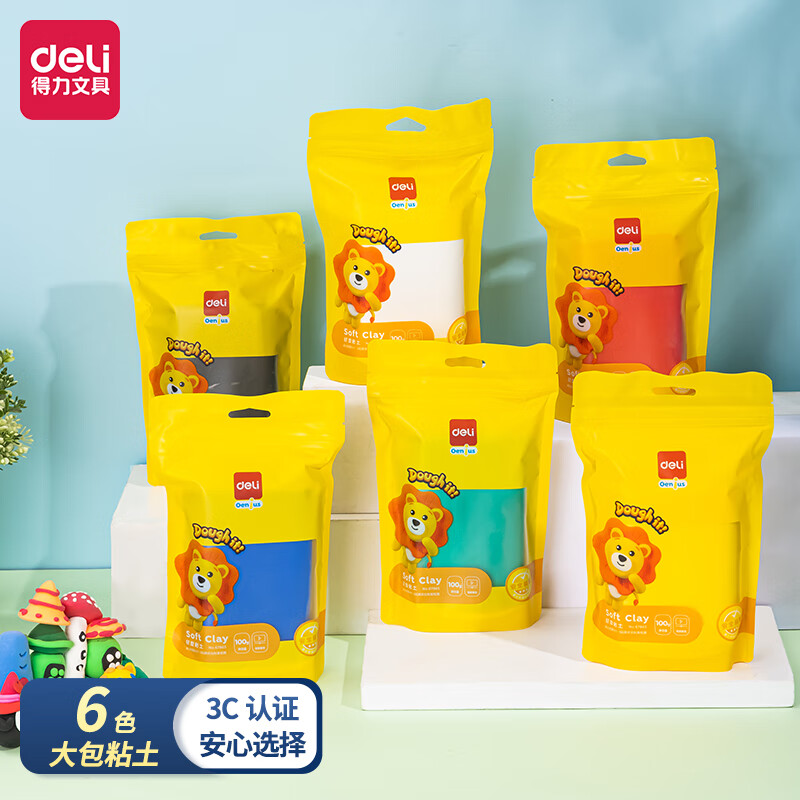 得力(deli) 轻型粘土6色大包补充装 儿童玩具彩泥橡皮泥手工创意DIY玩具男孩女孩生日礼物 6