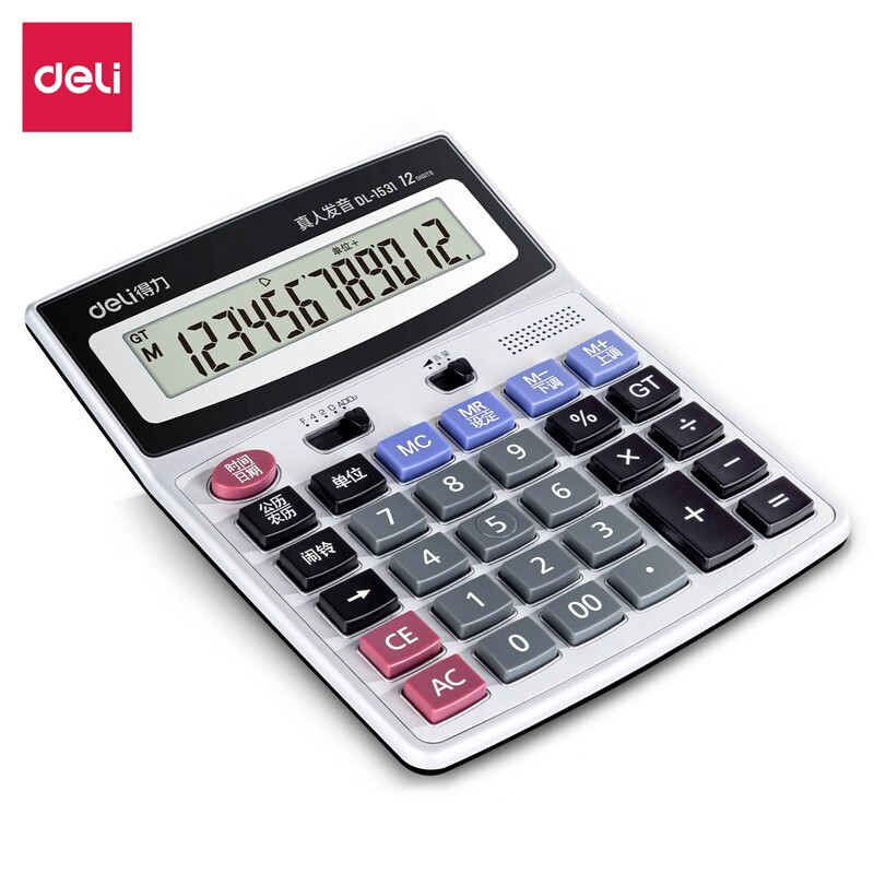 得力(deli)12位财务商超通用语音计算机 桌面语音计算器 黑色1502