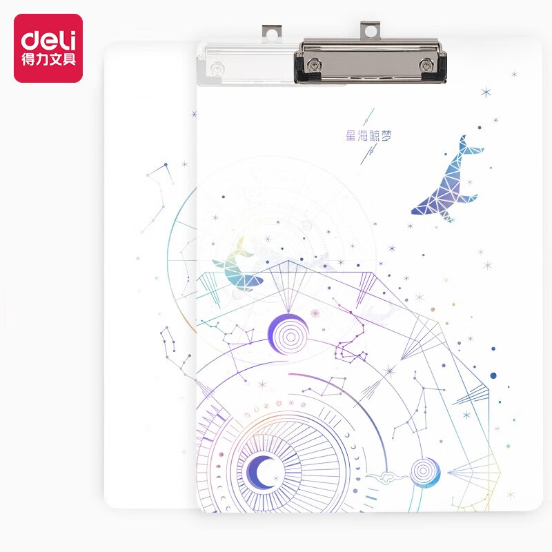 得力(deli)A4书写板夹 星空系列金属强力夹塑料文件夹 多功能写字垫板 72603透明色
