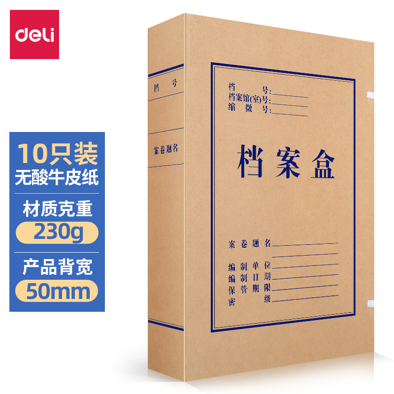 得力(deli)10只50mm230g无酸牛皮纸文件盒 加厚塑料财会档案盒 考试收纳 5612