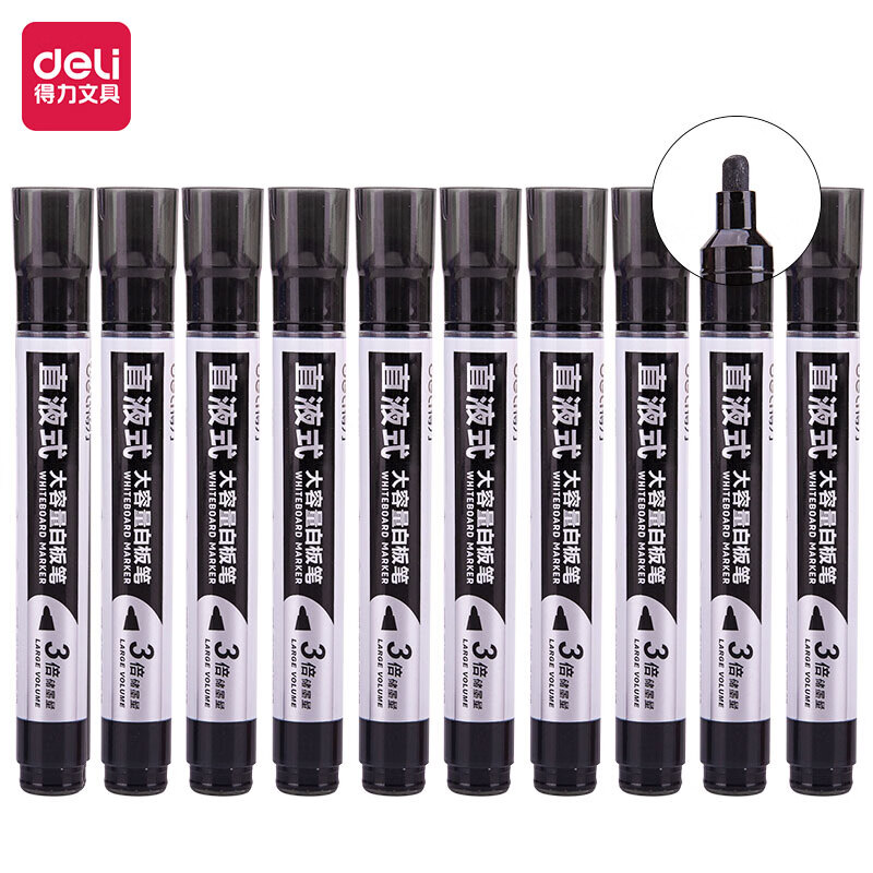 得力(deli)直液式白板笔 大容量可擦易擦 黑色10支 办公用品