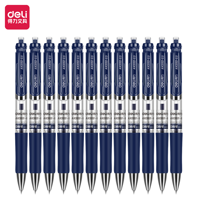 得力(deli)S01黑色中性笔签字笔 0.5mm子弹头经典办公按动笔水笔 12支/盒