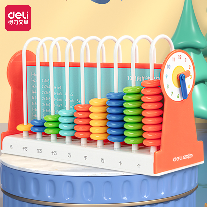 得力(deli)9行儿童计数器益智学习教具学生加减法数学计算架益智玩具 橙色74315