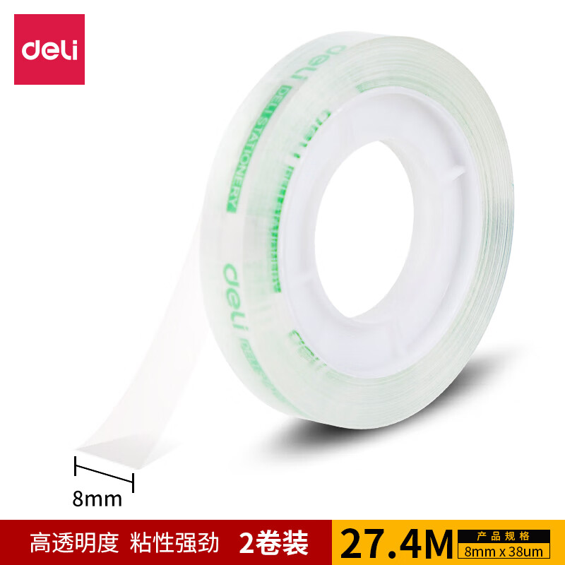 得力(deli)透明高粘文具胶带/小胶带 8mm*30Y(27.3m) 2卷装 创意枕式包装 300