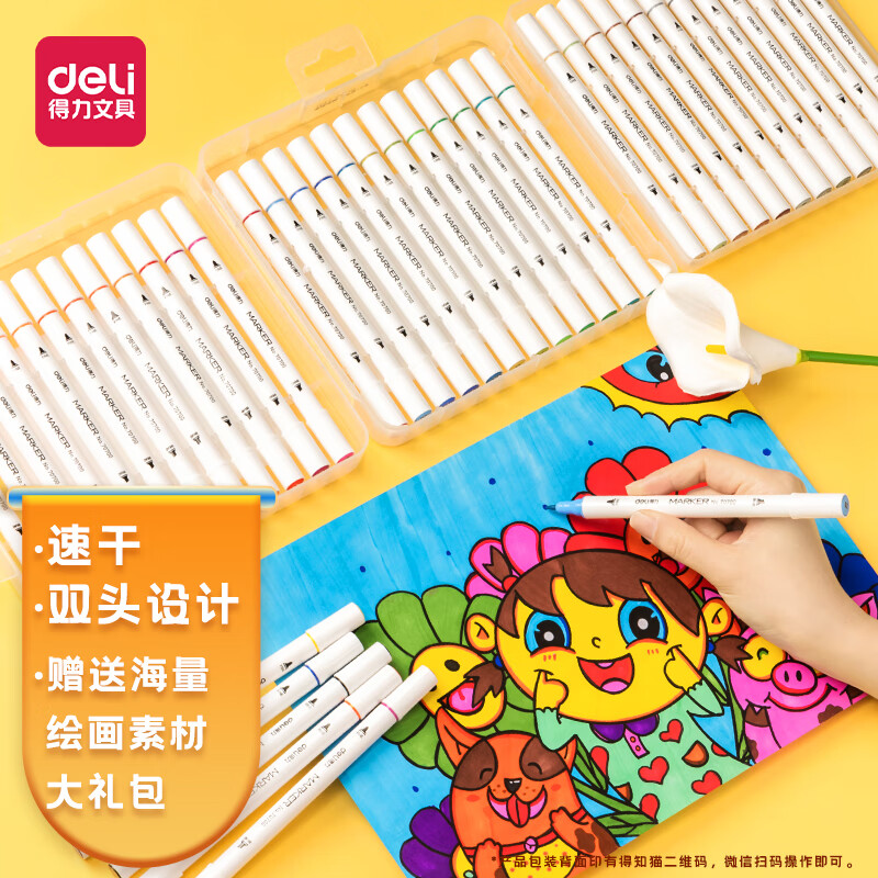 得力(deli)36色双头细杆马克笔套装 学生水彩笔双头绘画彩笔手绘漫画笔设计绘画记号笔 70700