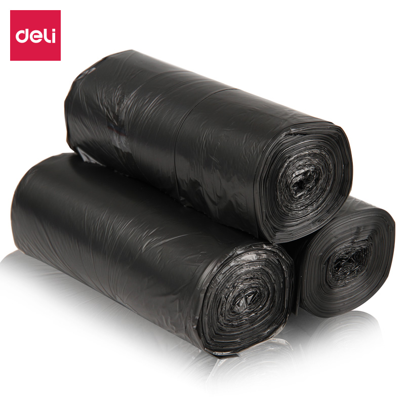 得力(deli)3卷(90只)点段式办公生活加厚垃圾袋45*55cm 垃圾分类 办公用品 黑色330