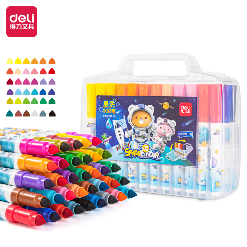 得力(deli)36色儿童水彩笔易水洗 彩绘涂鸦涂色文具幼儿绘画彩笔宝宝画画生日元旦圣诞礼物7073