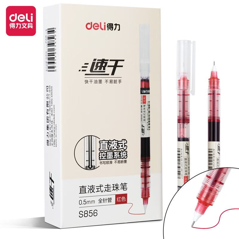 得力(deli)直液笔走珠签字笔 学生办公中性笔 ins无印简约风 0.5mm全针管12支/盒S85