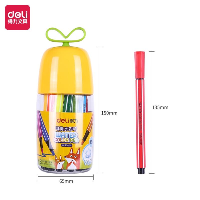 得力(deli)18色可洗水彩笔 儿童涂色颜色笔画画套装幼儿园绘画 萌萌筒70677