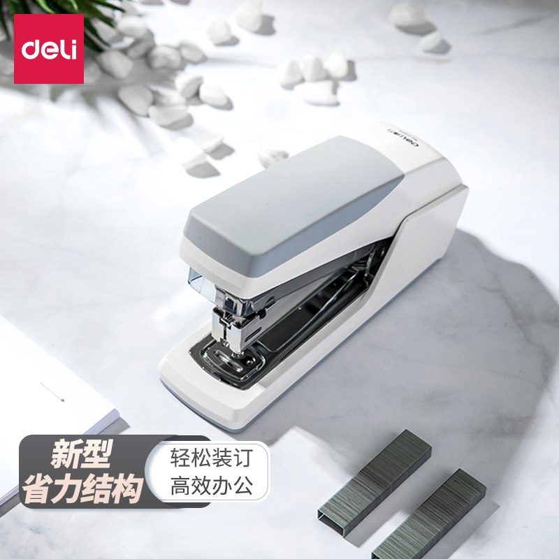 得力(deli)省力型订书机/订书器 适配24/6(12#)及26/6订书钉 办公用品 白色0368