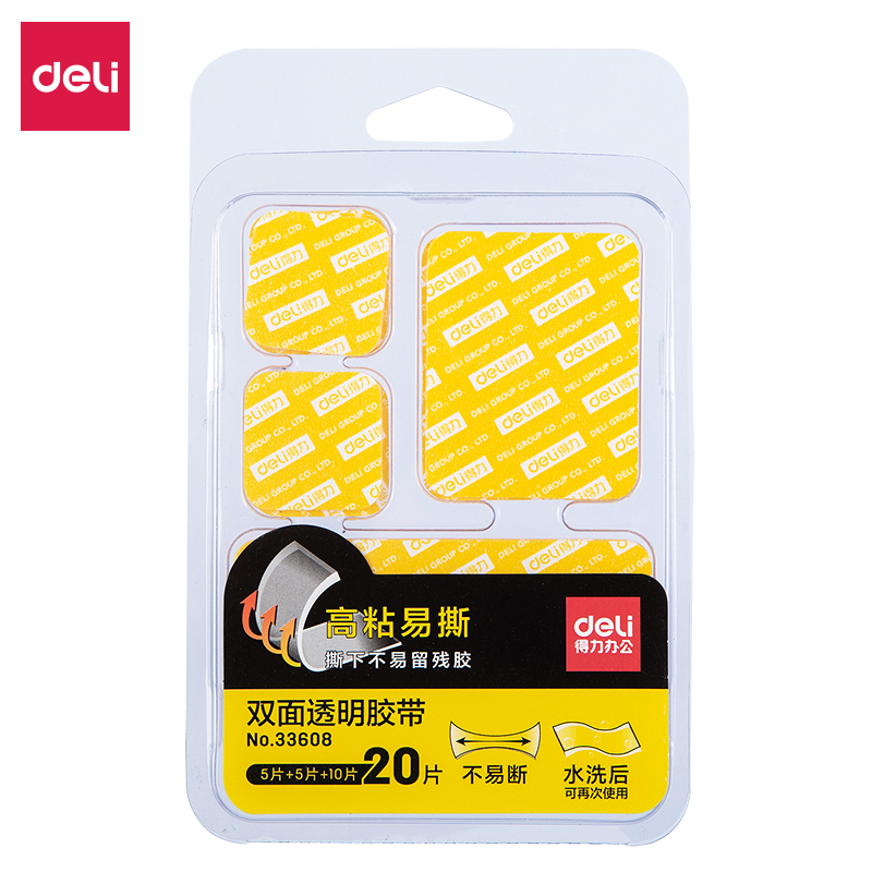 得力(deli)纳米强力无痕胶 多规格片装 随手贴 透明家用车用双面胶 20片/包 33608 可重