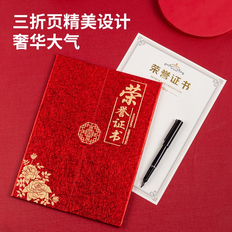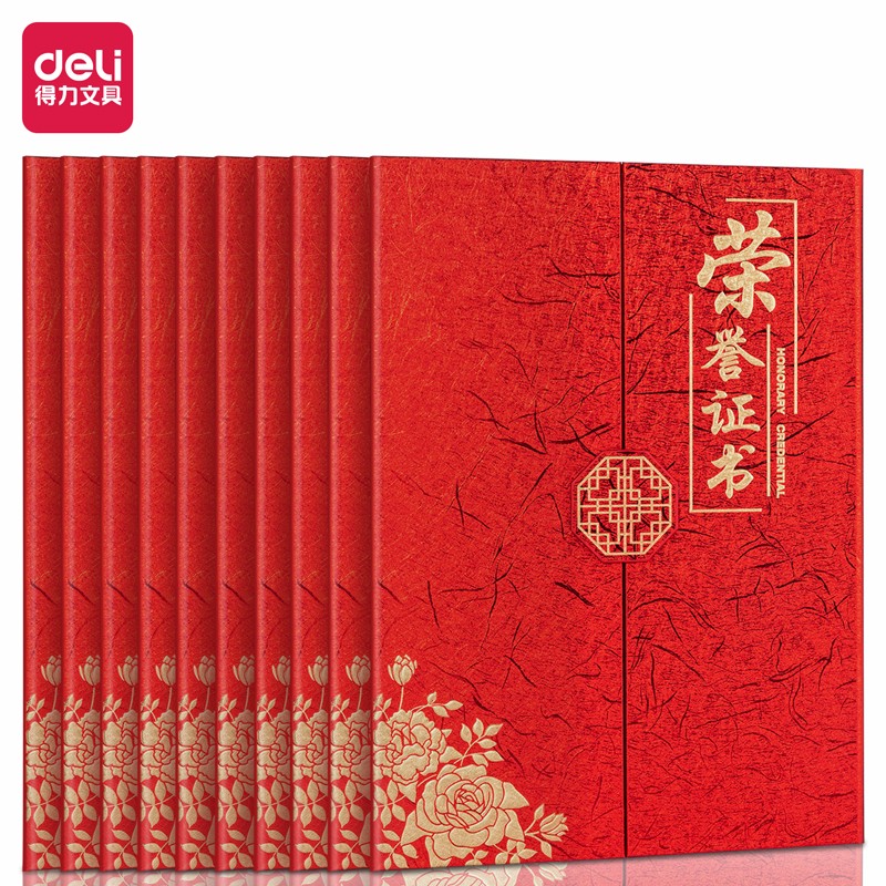 得力(deli) 10本12K荣誉证书 三折页设计 特种纸封面 附内芯/打印模板 24819