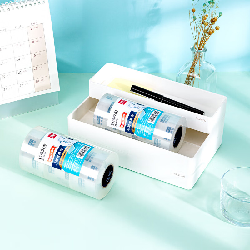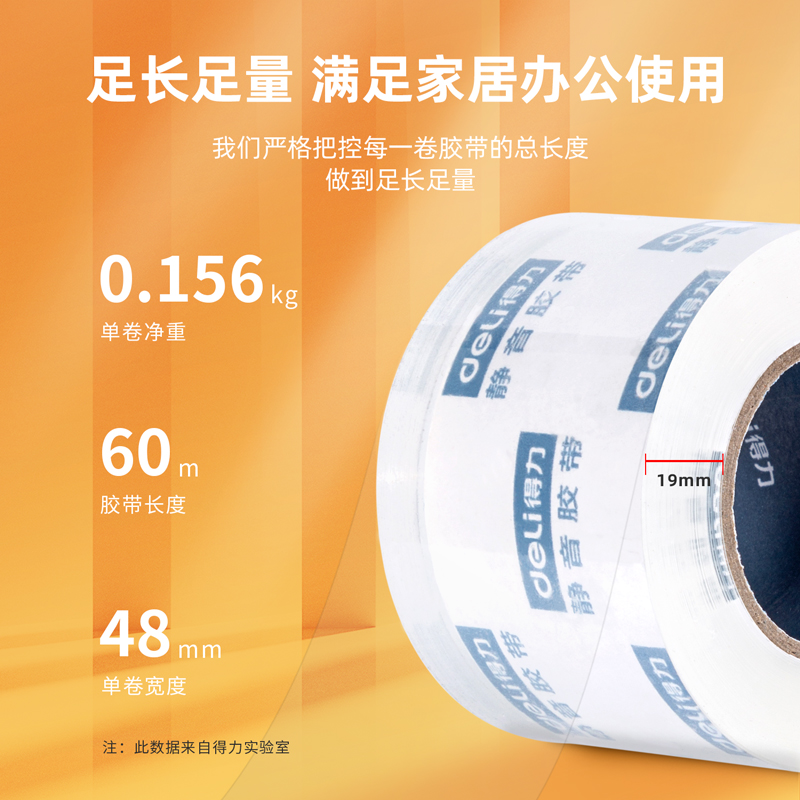得力(deli)48mm*60m*60μm小卷芯低噪透明封箱胶带 3卷/筒 30048