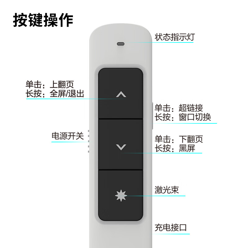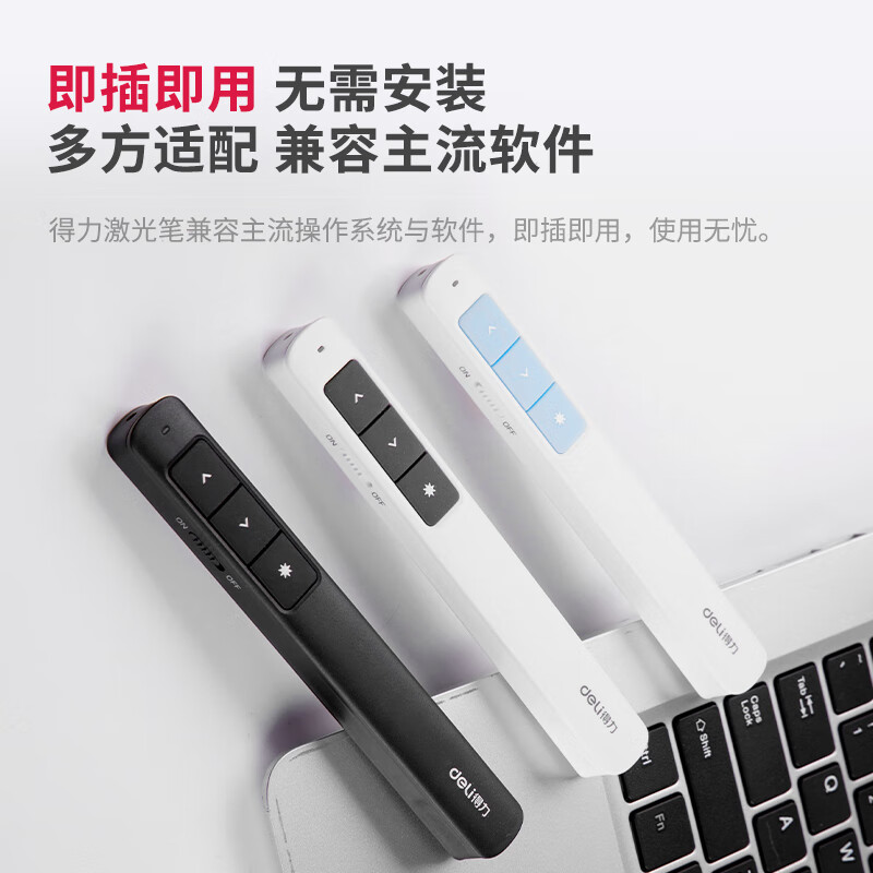 得力(deli) 360度控制教师专用PPT超链接功能教鞭/无线演示器课件笔 红光充电款激光翻页笔