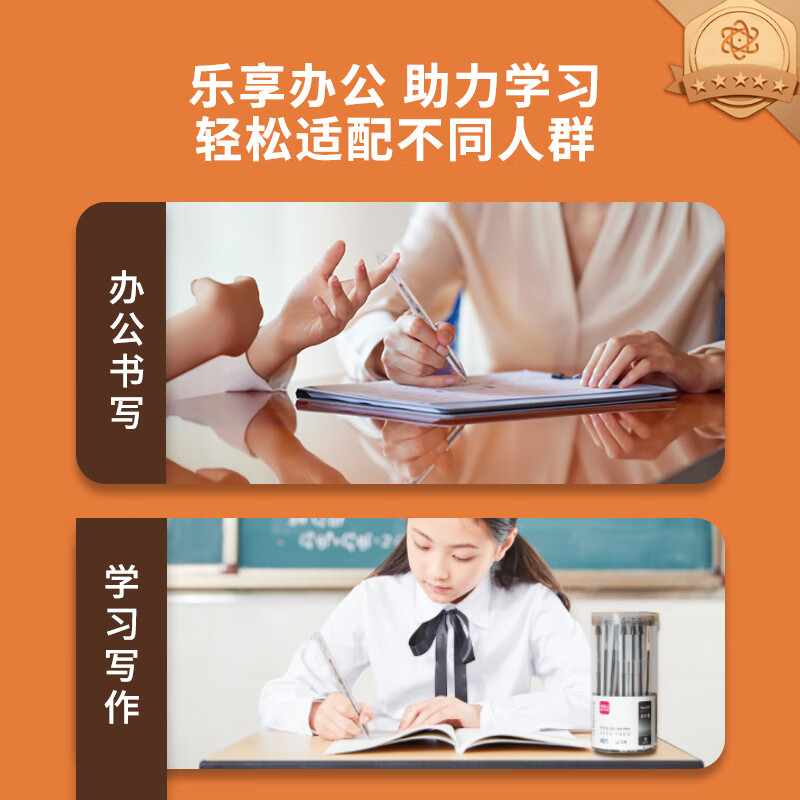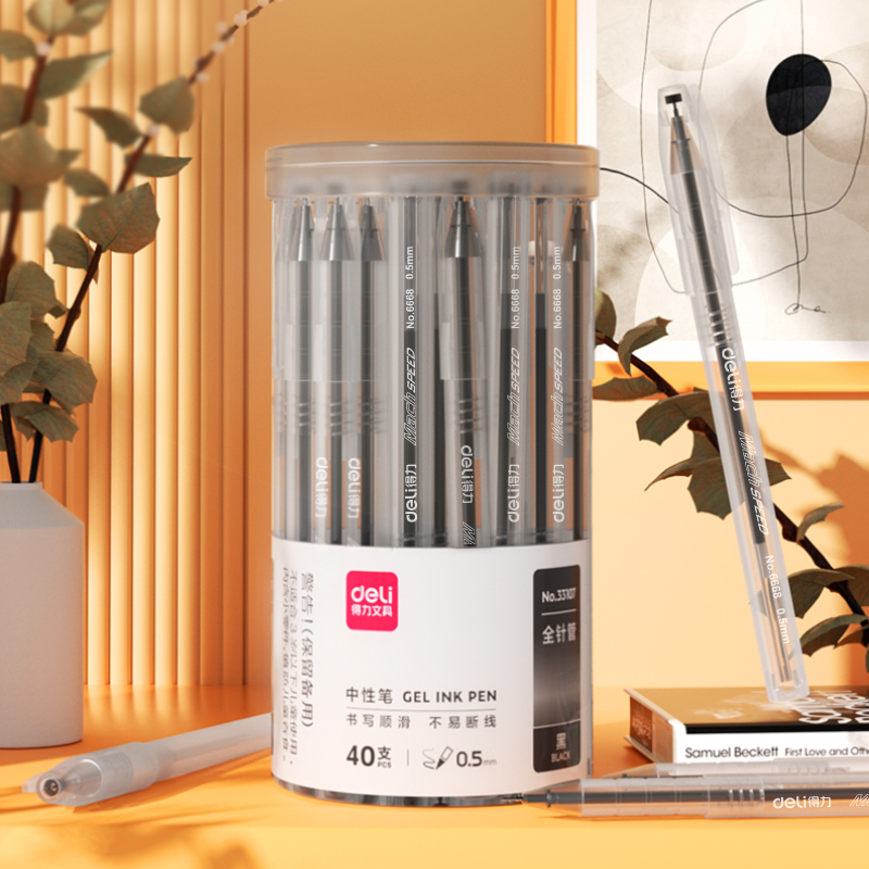 得力(deli)0.5mm全针管黑色中性笔水笔签字笔 办公用品 40支/桶33107