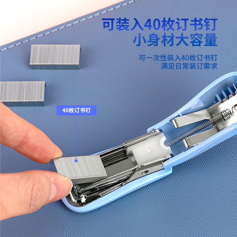得力(deli)12#迷你便携订书机套装(订书机+订书针) 试卷装订 学习用品 蓝色0255