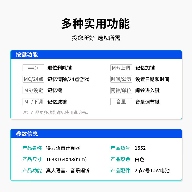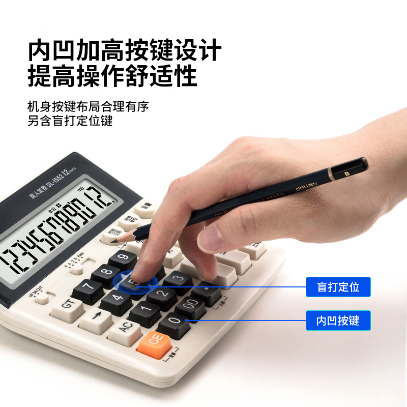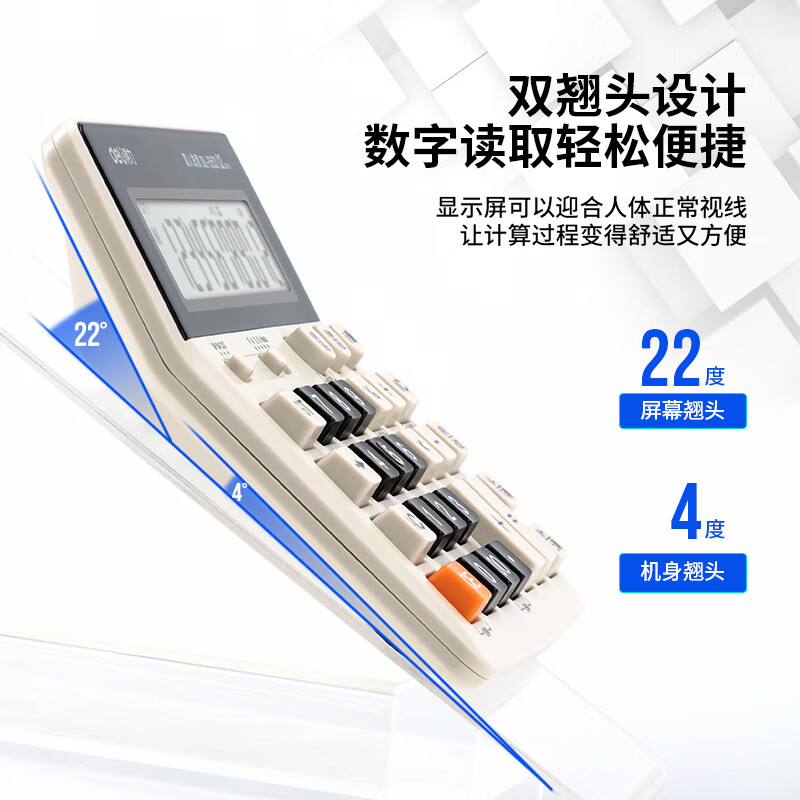 得力(deli)电脑按键语音计算器 12位大屏显示语音计算机 财务及银行人员适用 白色1552