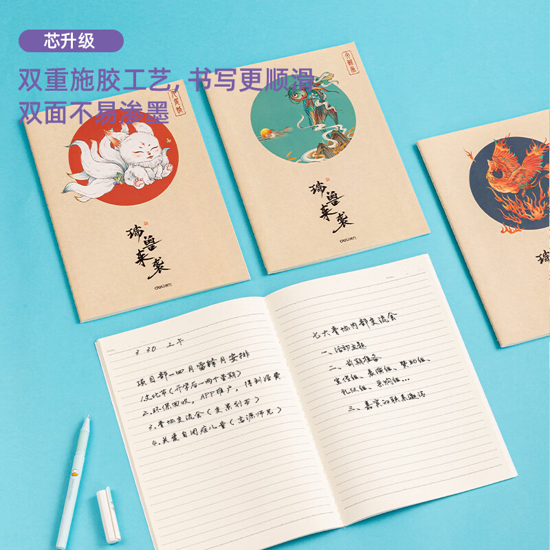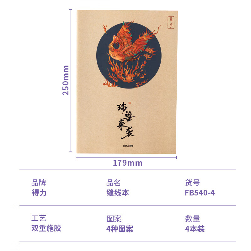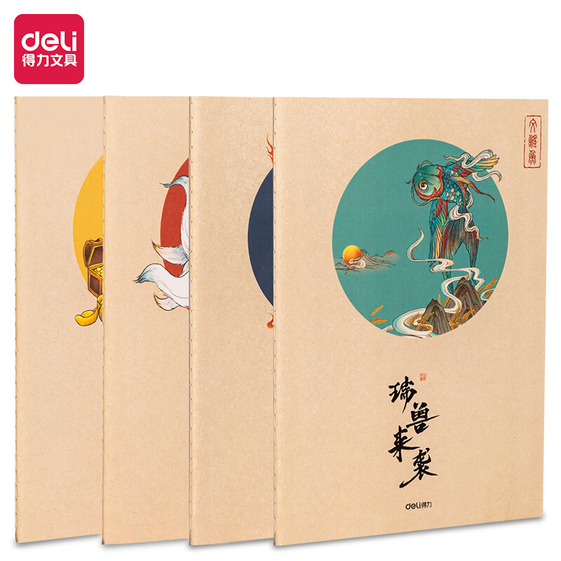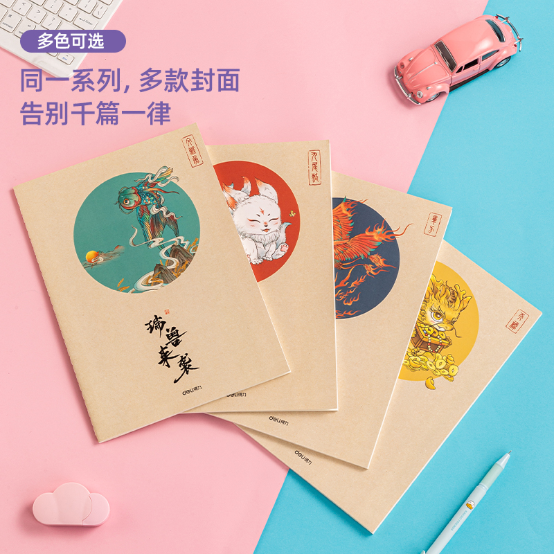 得力(deli)瑞兽来袭系列缝线本笔记本子 软抄本/ 学生记事本/ 日记本/课堂作业本 文具 4本装