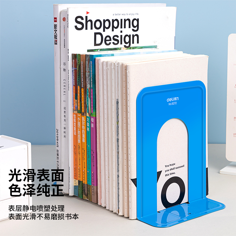 得力(deli)7英寸(高17cm)金属铁书立架 办公书靠2片/付 办公用品 蓝色9272