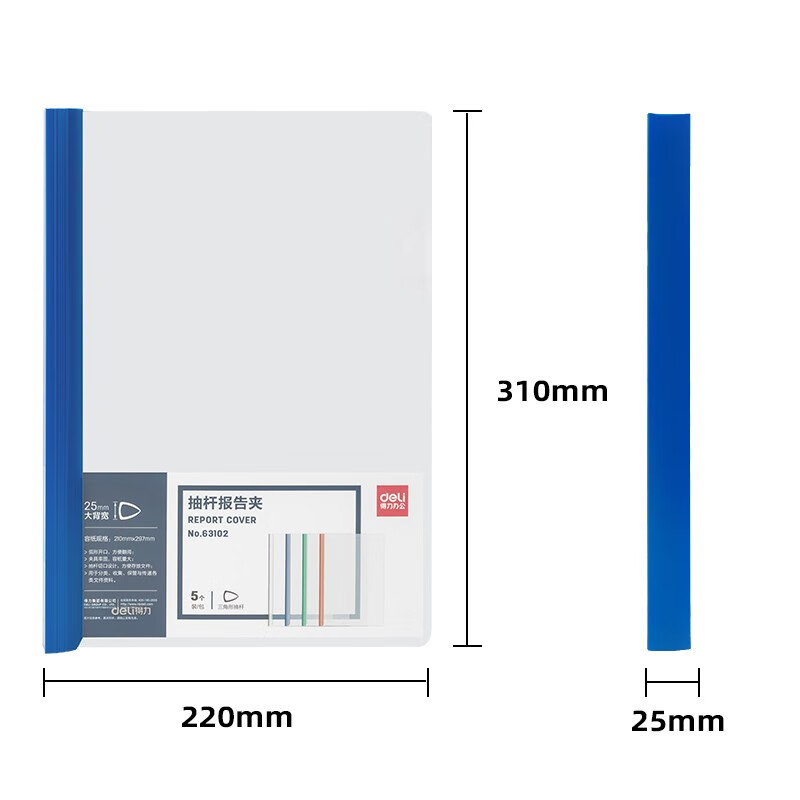 得力(deli)5只A4彩色透明抽杆夹 25mm大背宽简历夹 学生考试收纳 颜色随机 63102