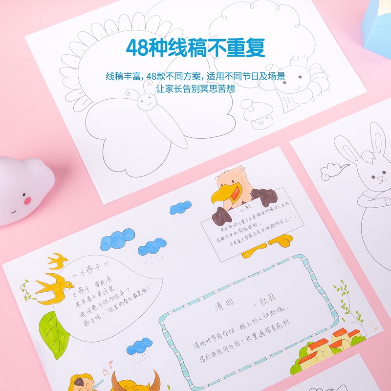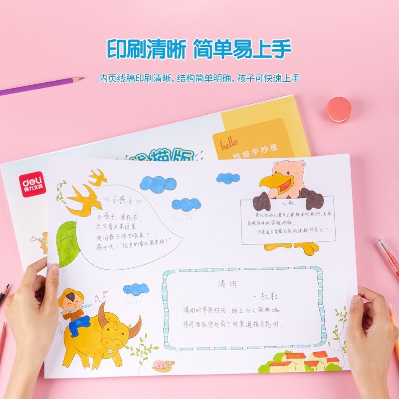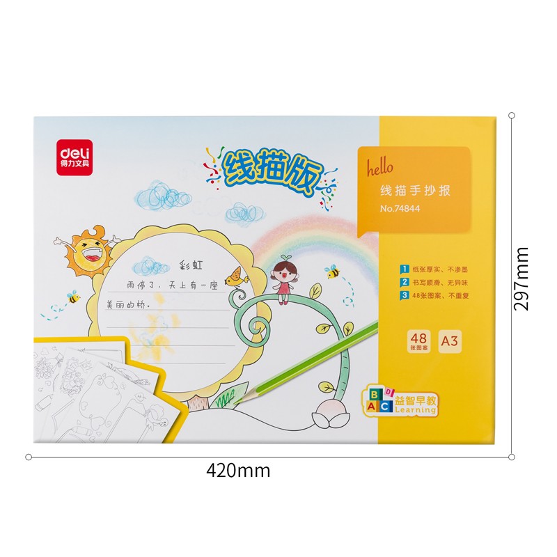 得力(deli)手抄报模板A3尺寸 48款小学生手抄报绘画工具套装 板报读书小报 74844