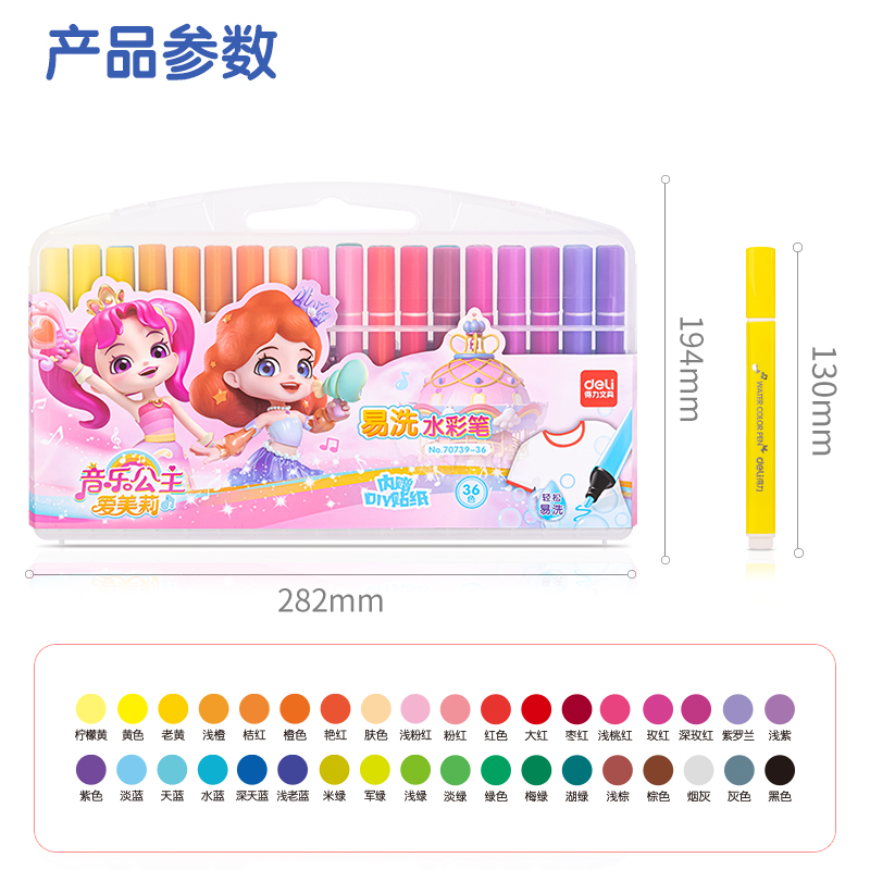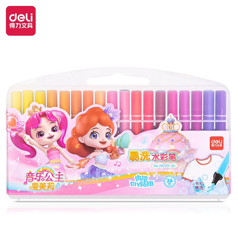得力(deli)36色易洗水彩笔音乐公主爱美莉系列 彩绘涂鸦文具幼儿绘画彩笔宝宝画画礼物70739