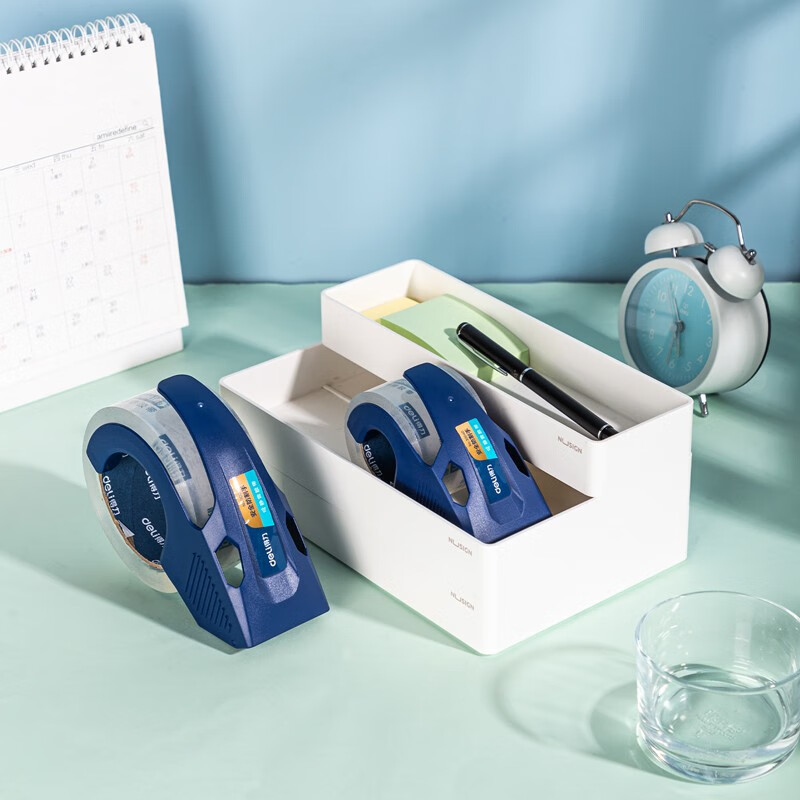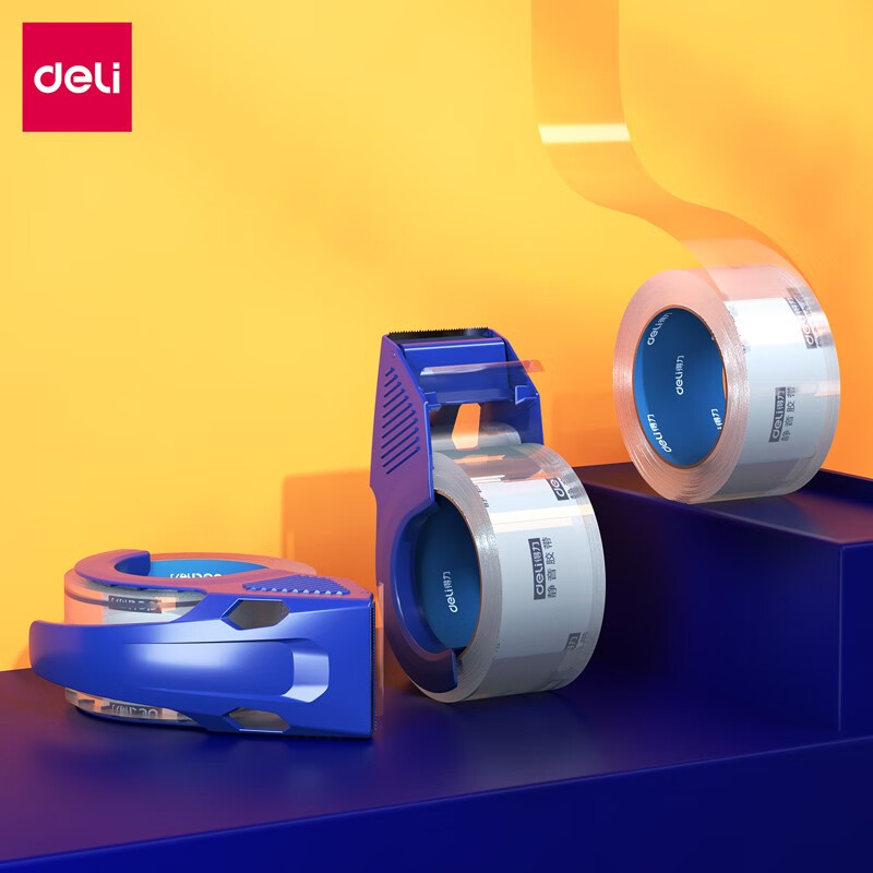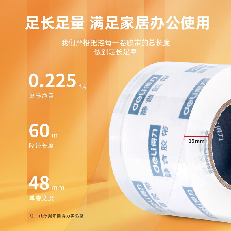得力(deli)小卷芯封箱胶带/打包胶带/家庭低噪胶带 48mm*60m*60μm 带切割器 1卷装