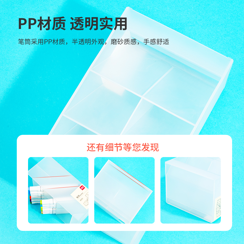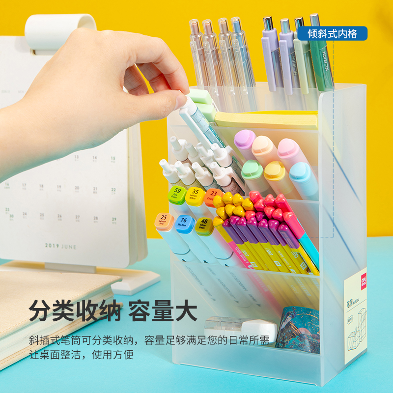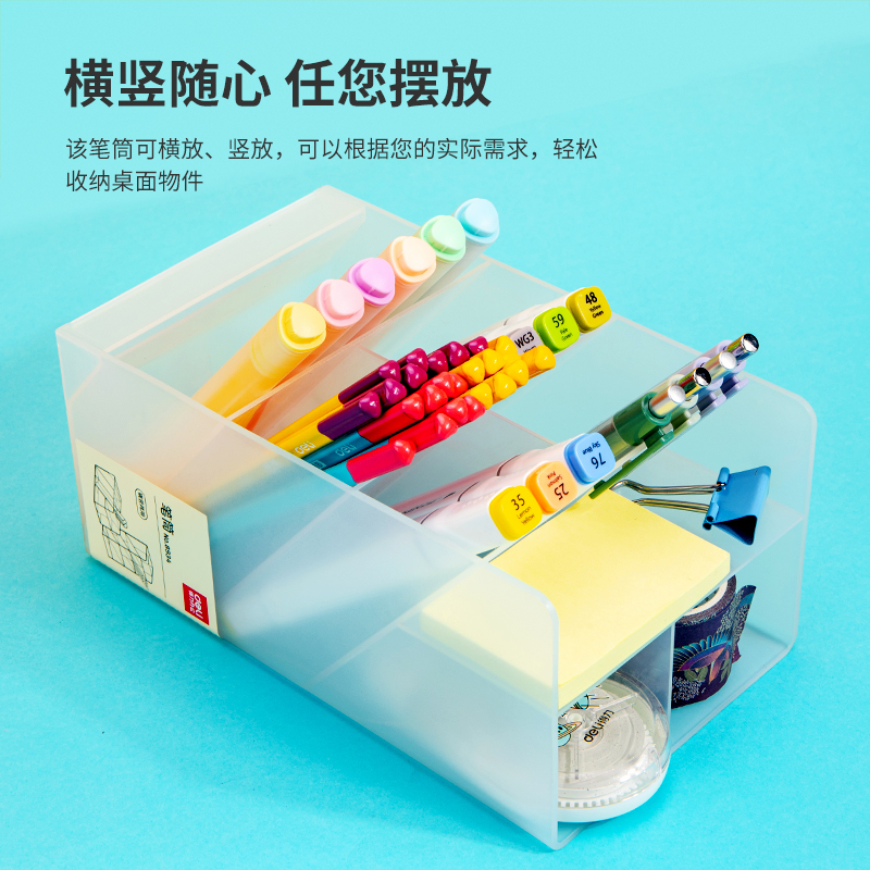 得力(deli)双联斜插式笔筒 桌面收纳笔架 多功能化妆收纳盒 透明8934