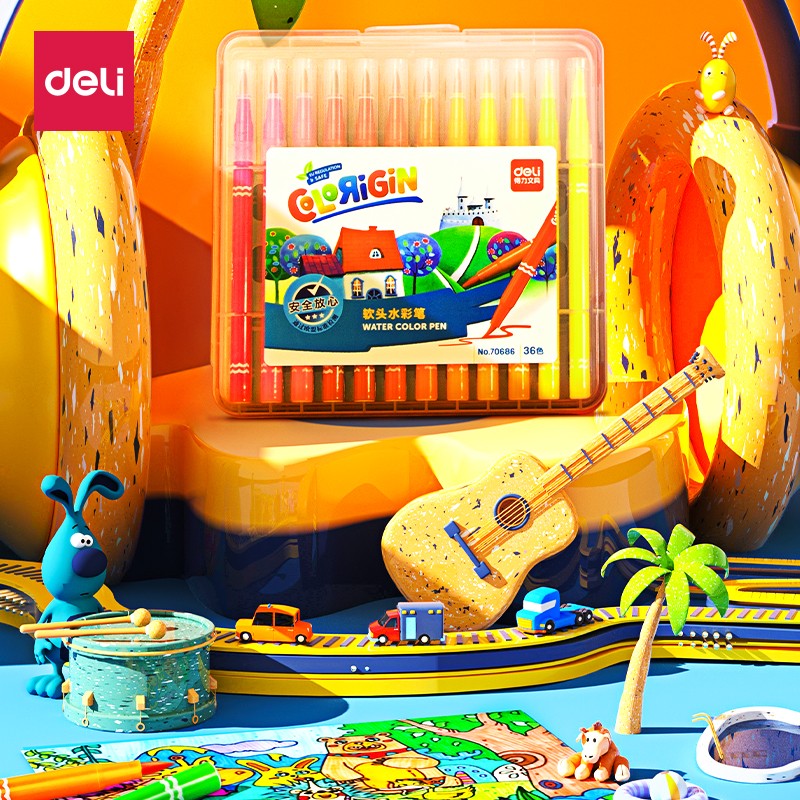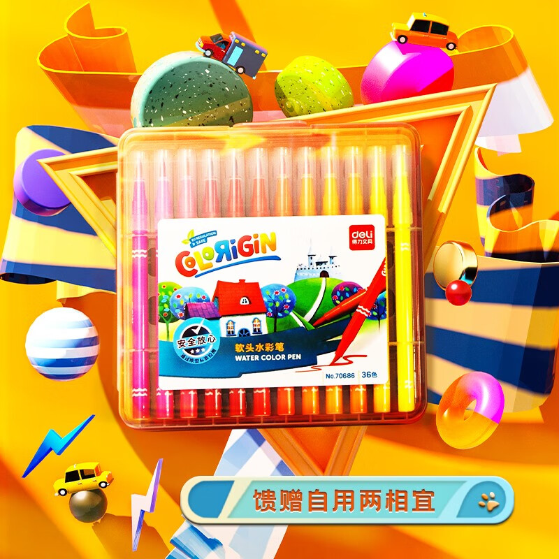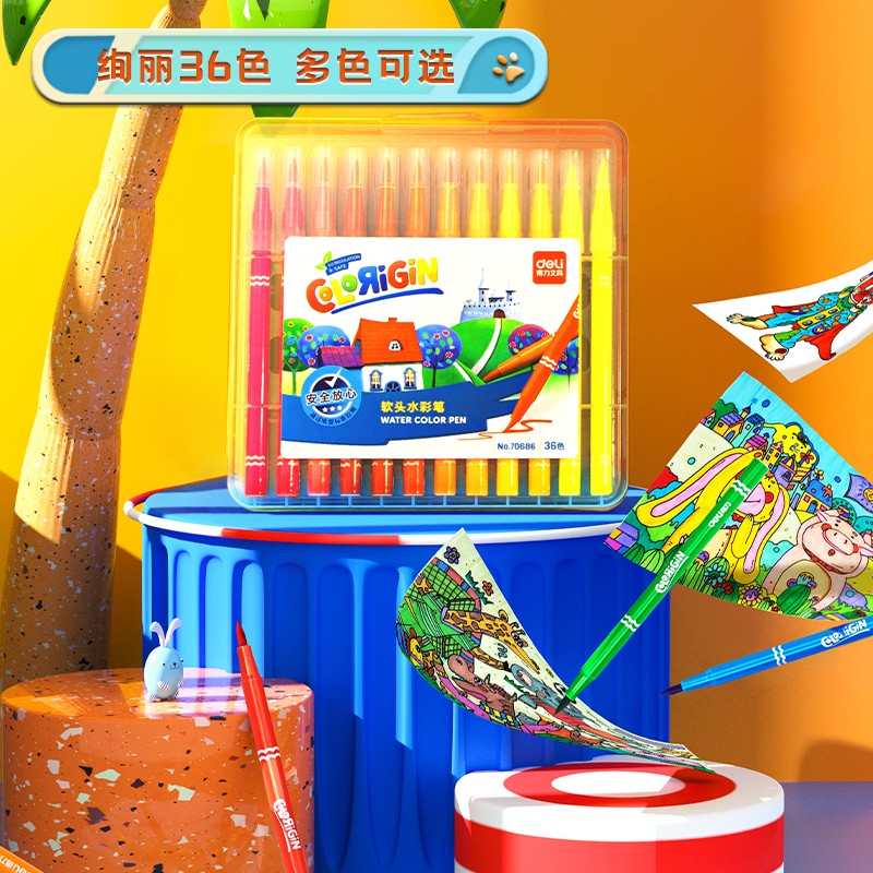 得力(deli)36色软头水彩笔 勾线笔水笔涂卡签名笔记号笔细水性笔多色笔标记学生设计绘画套装画画文