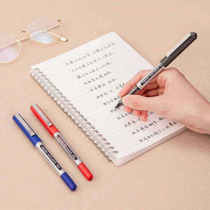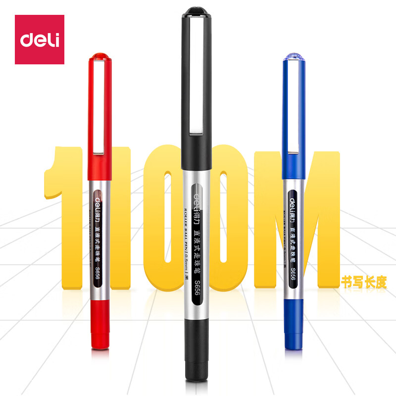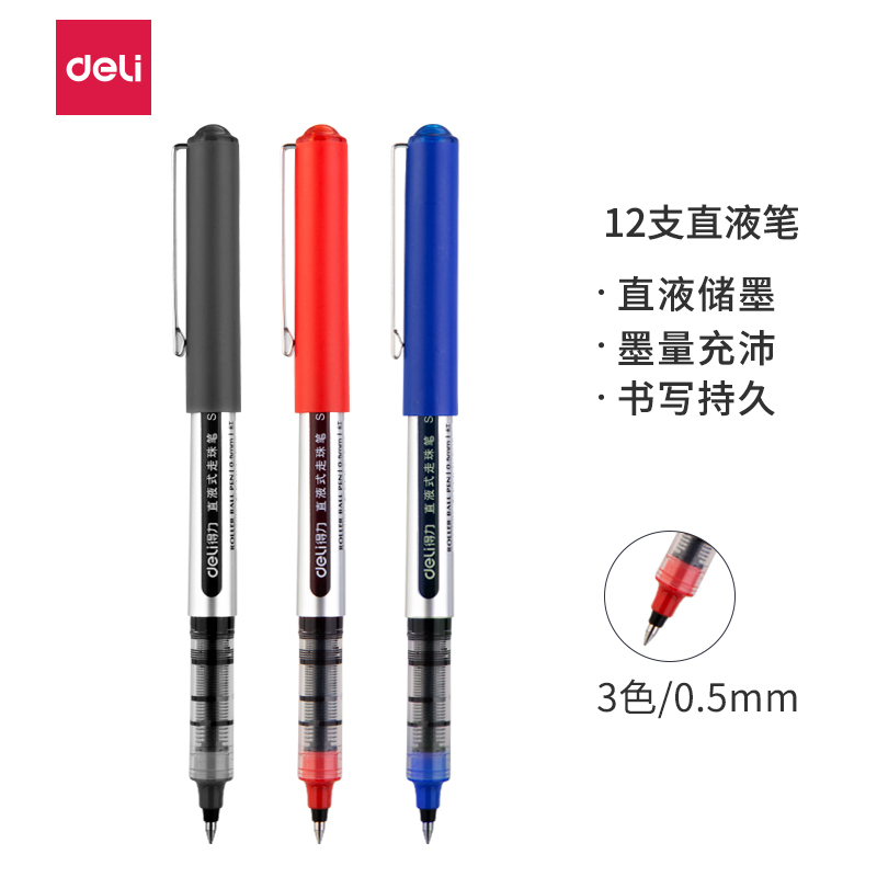 得力(deli)直液笔 0.5mm子弹头中性笔签字笔 走珠笔水笔 办公文具 9黑2红1蓝 33566