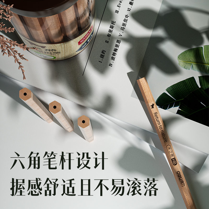 得力(deli)木之然系列HB六角笔杆书写绘画素描铅笔 30支/桶S940-HB