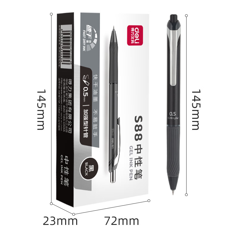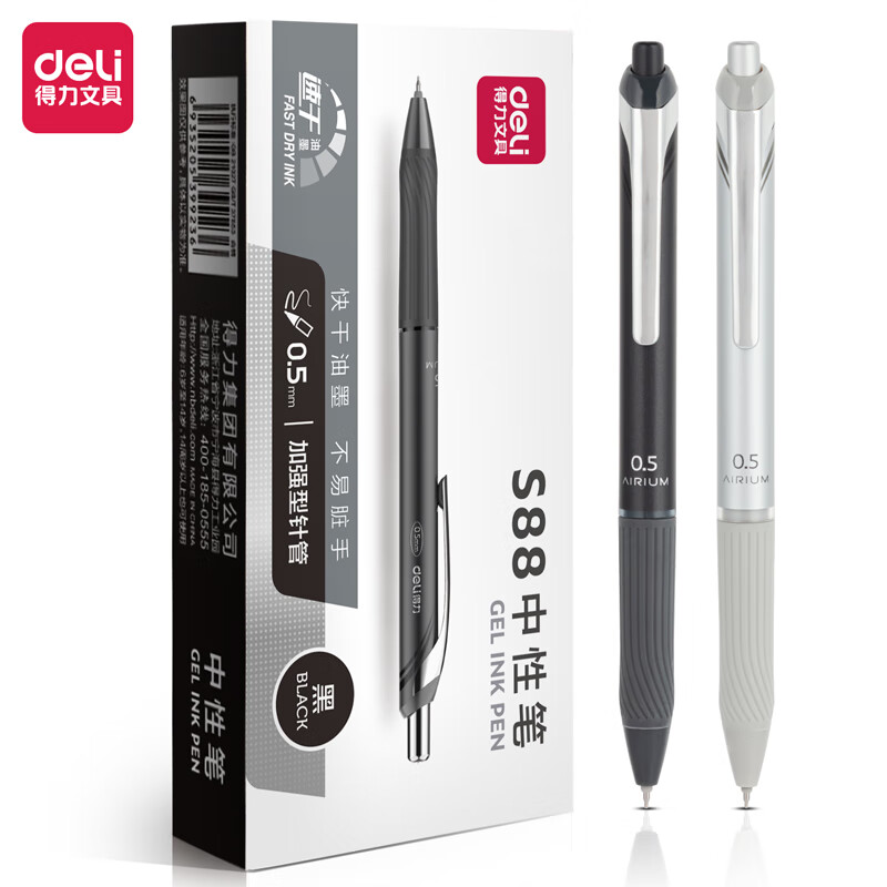 得力(deli)金属笔夹速干按动中性笔签字笔办公笔 0.5mm加强型针管 12支/盒黑色 S88