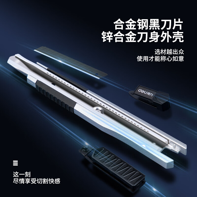 得力(deli)黑刀片锌合金美工刀 安全自锁功能裁纸刀 2056S