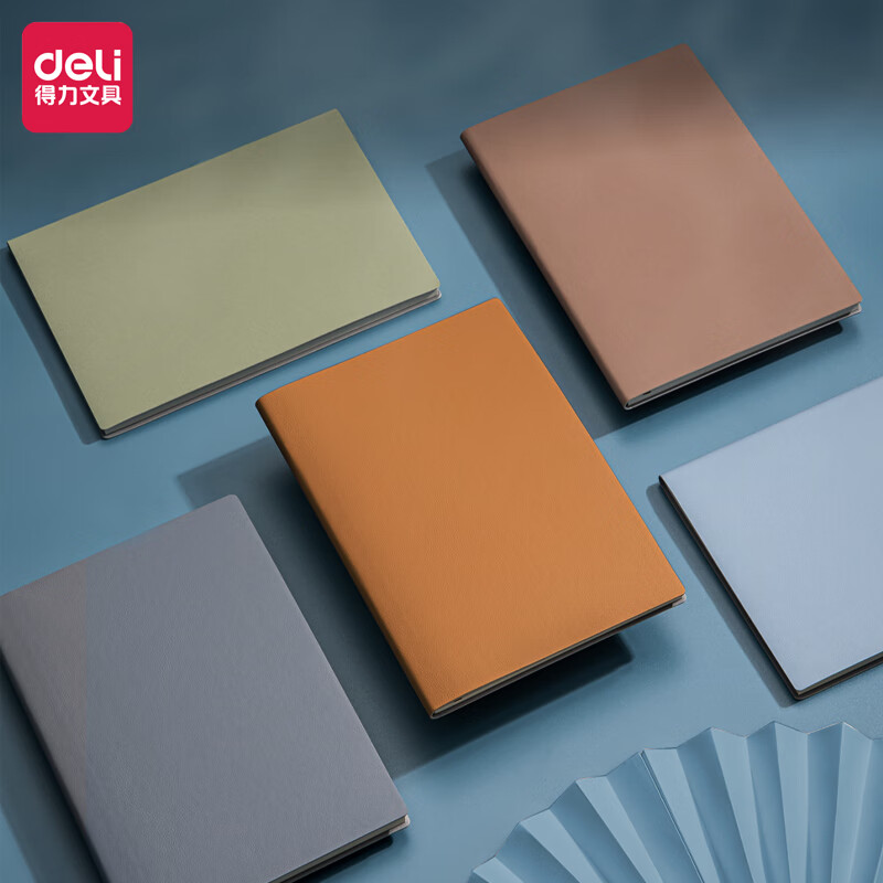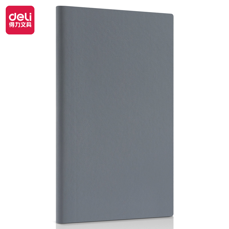 得力(deli)个性皮面本笔记本子 办公用品会议记事本文具 软面材质贴芯工艺 25K80张 灰色 2