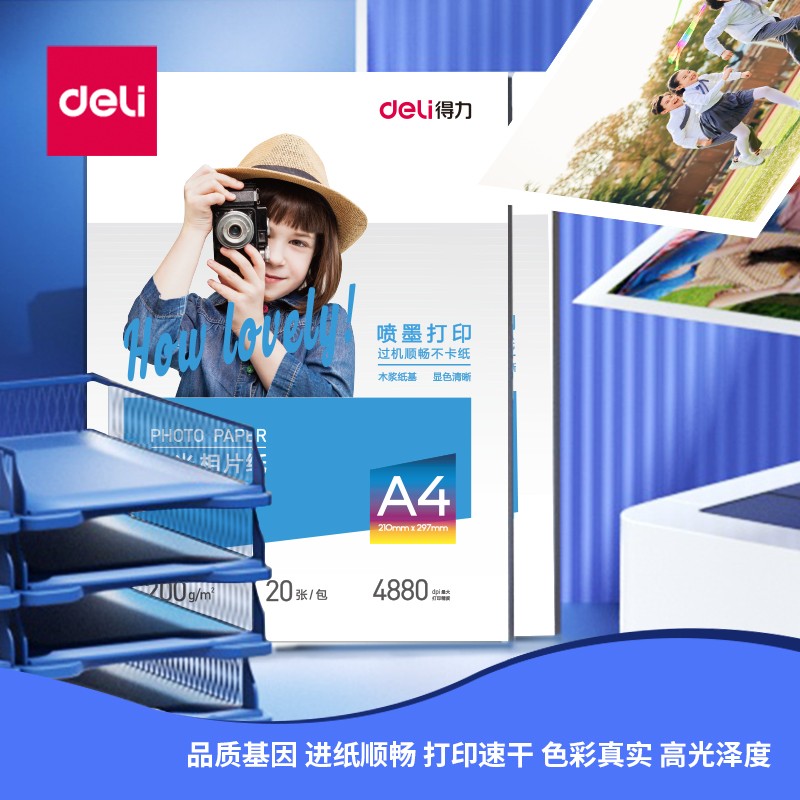 得力(deli)A4 200g高光面照片纸相片纸 彩色喷墨打印纸 20张/包 3541