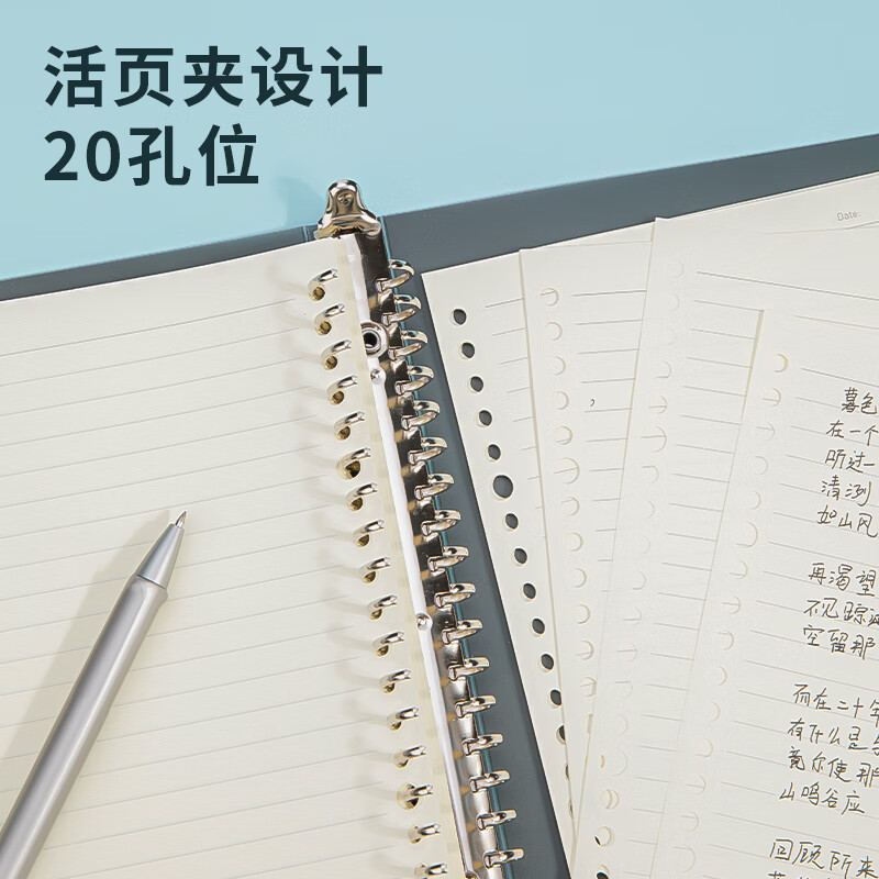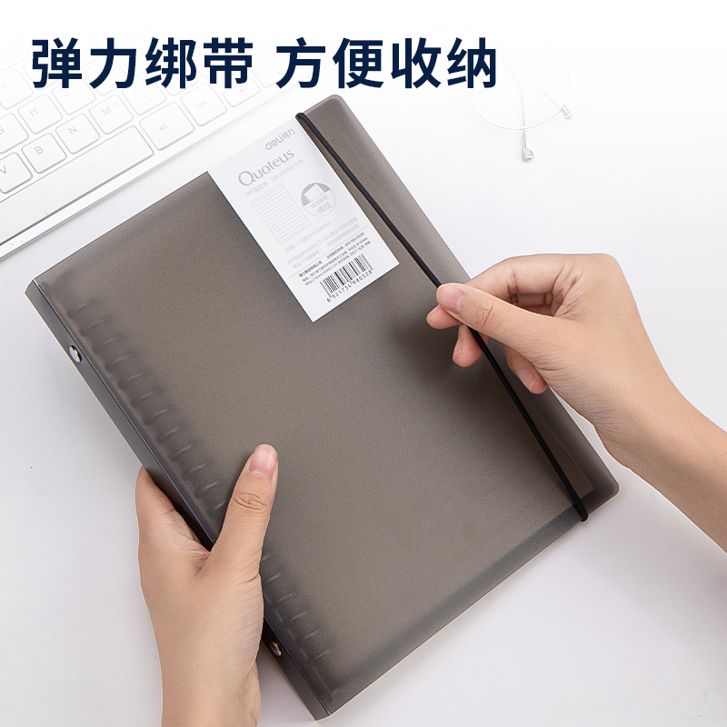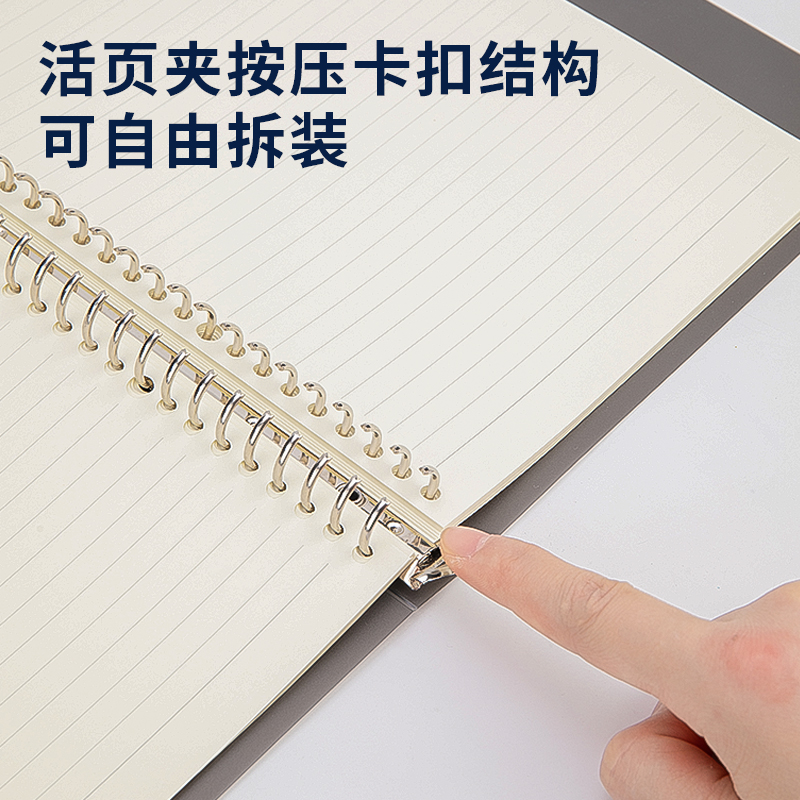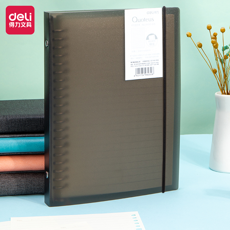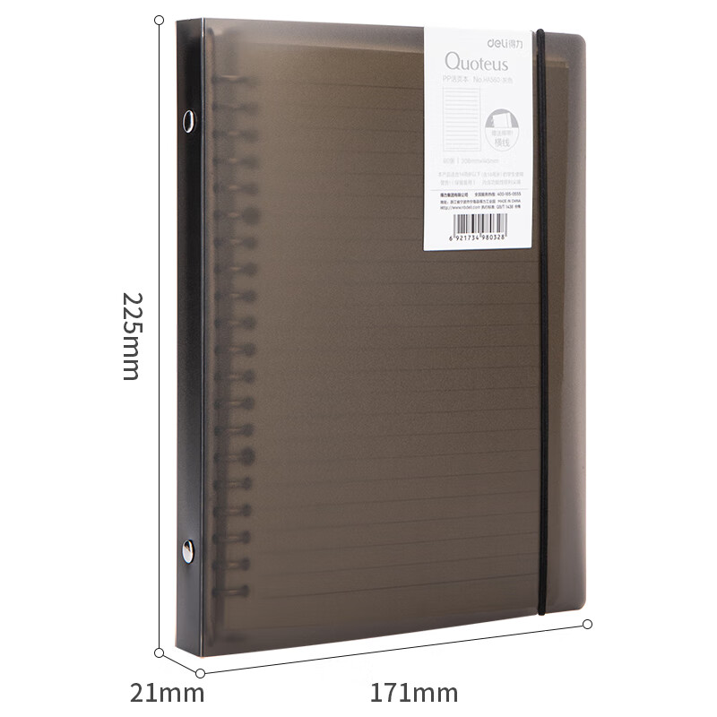 得力(deli)A5/60张活页笔记本子 可替换芯记事本 考研复习笔记本文具 灰色 HA560