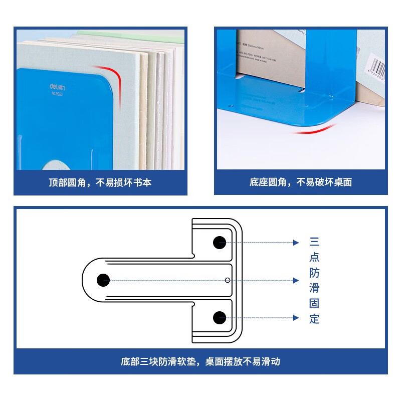 得力(deli)9英寸(高23cm)金属铁书立架 书籍挡靠夹2片/付 办公用品 蓝色9263